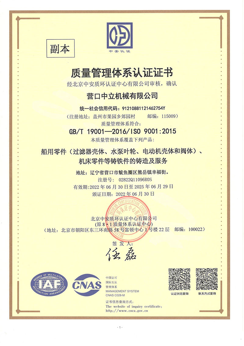 營口中立機械有限公司位于營口市鲅魚圈區(qū)熊岳鎮(zhèn)幸福街,成立于1982年,占地面積15000平方米,建筑面積10000平方米,是從事高性能鑄鐵件生產(chǎn)的專業(yè)廠家。年生產(chǎn)能力5000噸。鑄造采用電爐熔煉呋喃樹脂砂造型先進工藝生產(chǎn),產(chǎn)品具有材質性能高、形狀復雜、尺寸精度、表面美觀等特點。多年來產(chǎn)品主要出口日本、德國及英美等國家,產(chǎn)品種類有機床、電機、船用閥門水泵、工程機械等千余品種鑄件或加工配套產(chǎn)品。